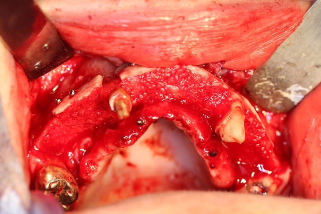 pas assez d'os, mais dans ton cas tu as comblé uniquement avec l'os prélevé ? tu as fais un parietal ou quoi ?