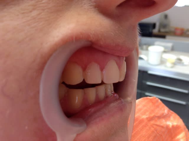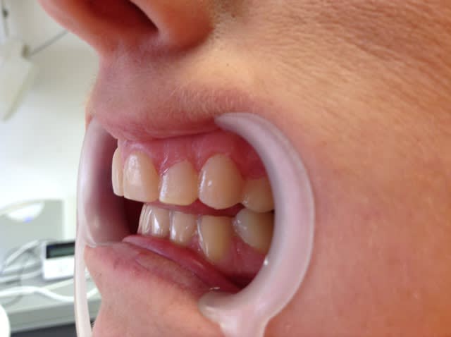 Le fait d enregistrer la centrée , les dents ne se touchent pas . ( c est l intérêt de la chose )