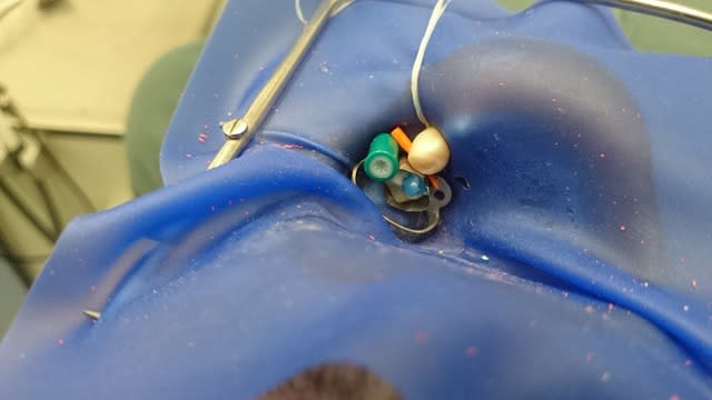 tu prends une bague de cuivre , tu mets de la resine auto dedans et tu l enfonce sur le moignon en faisant un chapeau sur le haut . environ 30s + 1mn pour durcir la resine