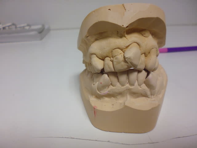 C'est un cas qui est encore à l'étude. Pour le moment la patiente est transportée de joie depuis qu'elle a vu le wax-up. Elle veut le mettre sur sa table de nuit pour pouvoir le contempler tout à son aise au cours de ses longues nuits solitaires. C'est une dame dépressive et vulnérable, toutes les réserves de prudence ont été dispensées et elle va avoir un long temps de réflexion, elle peut revenir sur sa décision à tout moment. Son mari avec lequel elle a un conflit important aura son mot à dire sur les finances (environ 3000 € au total, rien n'est remboursé hormis l'extraction). Elle est encouragée à prendre l'avis de ses proches. On lui a demandé de ne pas signer son devis ni de s'engager d'aucune manière dans les prochaines semaines.