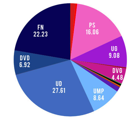 Abstentions 50,02 % + Blancs 5,69 + Nuls 2,63 = 58,34 %