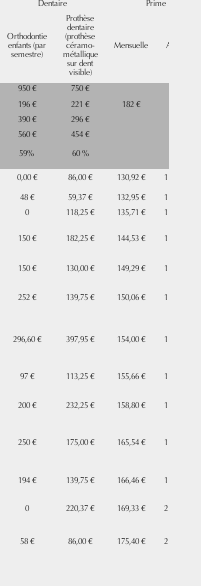 le célibataire est à 35€, plutôt jeune donc avec peu de risques dentaires, ttm ODF fini, donc à part quelques soins et détartrages ils n'ont en principe pas grand chose comme risques