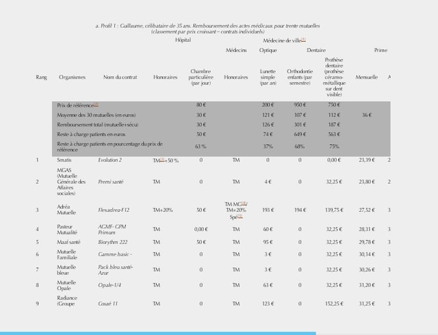 La conclusion de ces tableaux c'est que le risque santé pour une complémentaire santé n'est que dentaire ou optique.