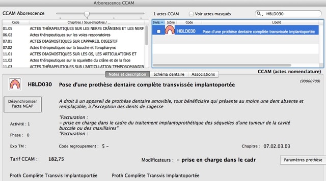 Le screenshot provient de MacDent qui est directement indexé au fichier CCAM...