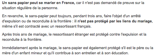 En cas d'urgence le sans papier peut également se marier. A condition bien sur qu'il atteste sur l'honneur de ne pas etre déjà marié, la polygamie étant interdite en France.