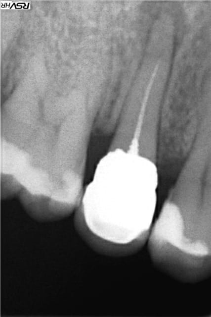 Même sans digue, irrigation au Dakin, obturation monocône scellé, provisoire à tenon, bref tout ce qui ne faut pas faire ...