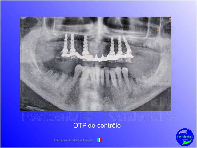 je ne vais pas discuter le nombre d'implants qui n'est pas forcément un problème lorsqu'ils sont précisément posés et de diamètres corrects pour éviter une trop grande proximité entre-eux ce qui est le cas ici.