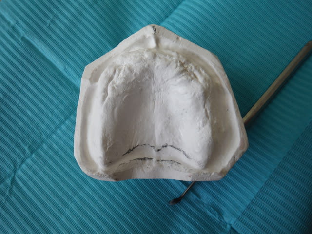 Je rallonge le PE du commerce avec de la periphery wax pour le soutien, et si j'ai un bord d'alginate intéressant mal soutenu je fais un apport d'alginate sur l'empreinte, du coté opposé, hors de la bouche, ceci afin d'en avoir une bonne épaisseur qui résistera au poids du plâtre.