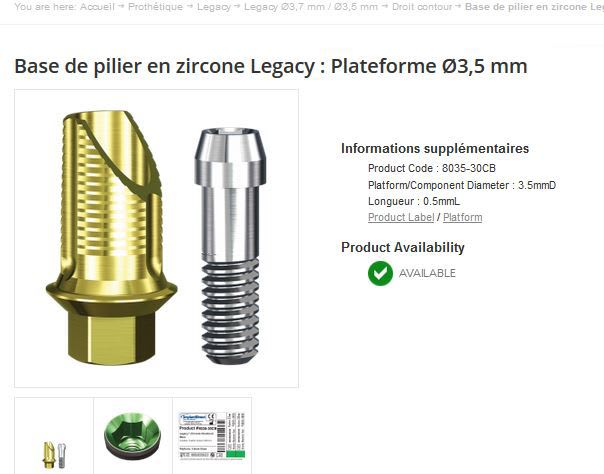 pour l'interactive, aussi mais faut ruser sur le site: aller sur les implants, cliquer sur le diamètre et une longueur, dans les descriptions en dessous il y a un onglet "pièces prothétiques" on retrouve les piliers zircone et les ti bases...