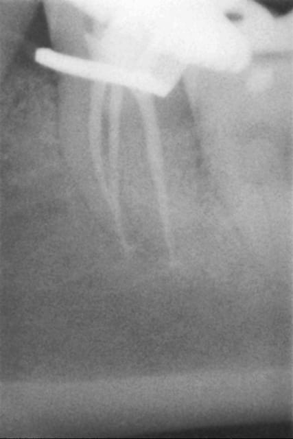 une félure sur les racines mésiales ? as tu fais de la condensation latérale ?