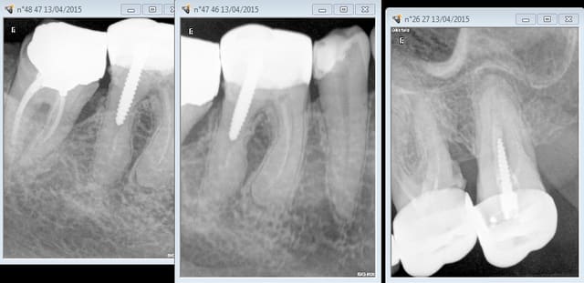 Merci pour vos avis,en grossissant la radio on peut effectivement penser à une fracture de la racine.Ce n'est pourtant pas la racine qui supporte le tenon.