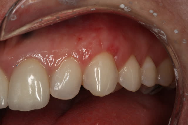 Sympa , je trouve que cela a meme amelioré l'aspect gingival autour de 22 . D'ailleurs y avait il eu une greffe en evstibulaire de 22 ou peut etre du tissu palatin ramené en vestibulaire ?