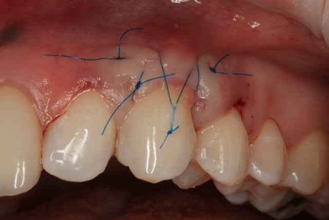 > Greffon tracté sous lambeau en mésial et distal comme le cas précédent avec