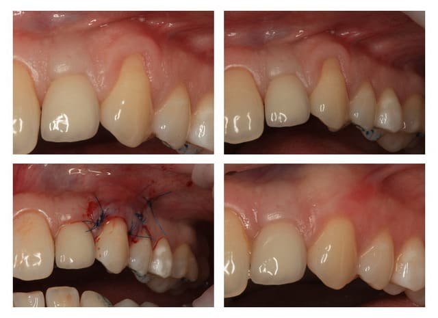 Greffon tracté sous lambeau en mésial et distal comme le cas précédent avec sutures.