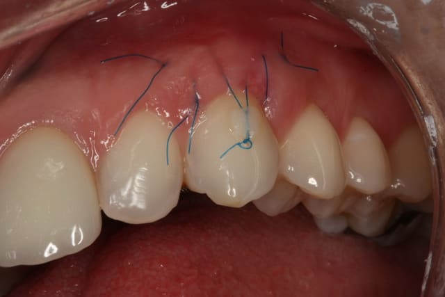 Greffon tracté sous lambeau en mésial et distal comme le cas précédent avec sutures.