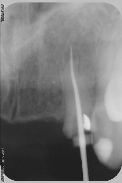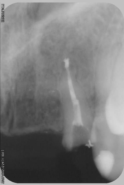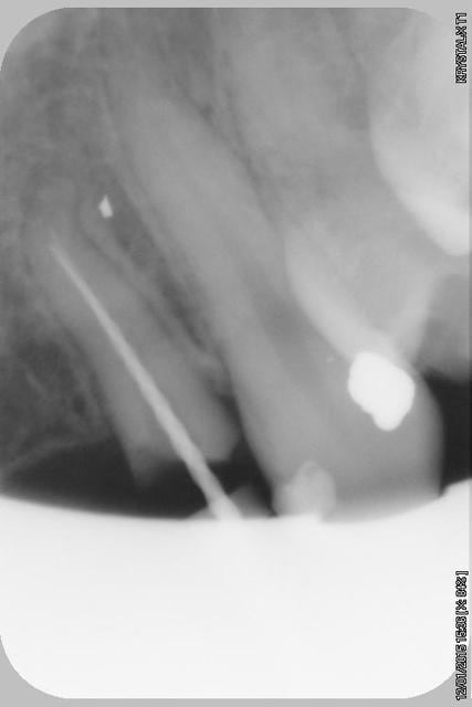 Et avec les instruments de rotation continue agressifs de reprise d'endo que l'on a maintenant, on s'engage dans la butée et on la "termine"... ça m'arrive aussi de temps en temps... de toutes façons, repasser de vieilles butées comme ça, même les endos exclusifs n'y arrivent presque jamais et font une chir apicale d'emblée.