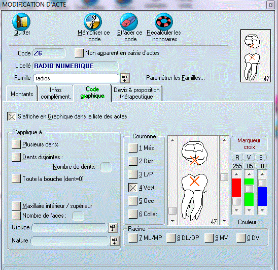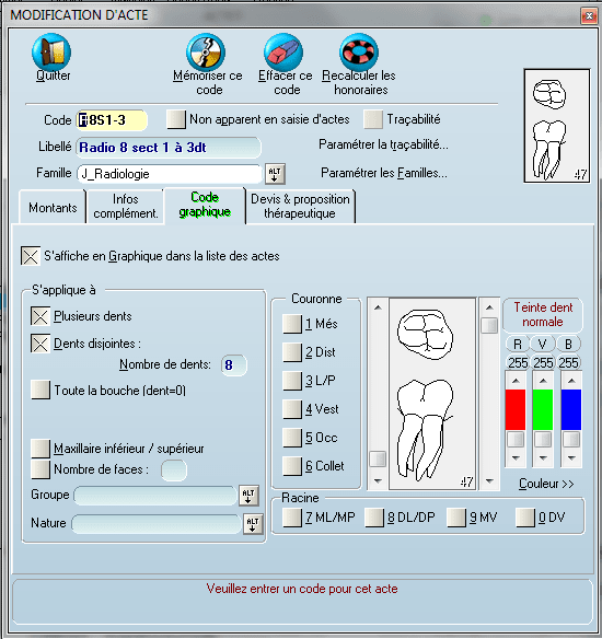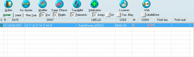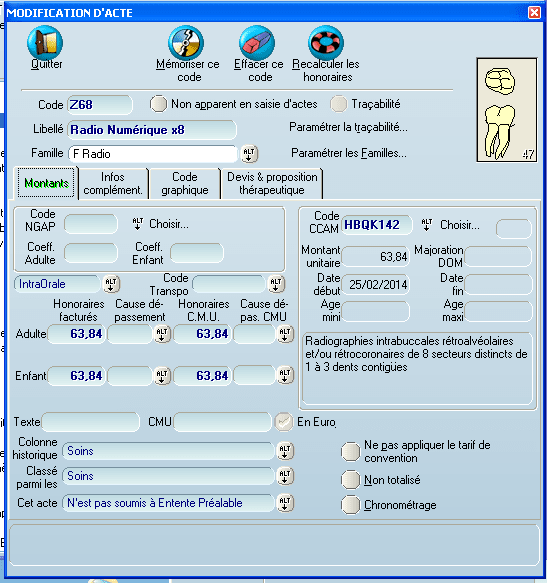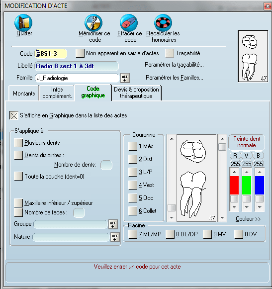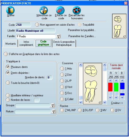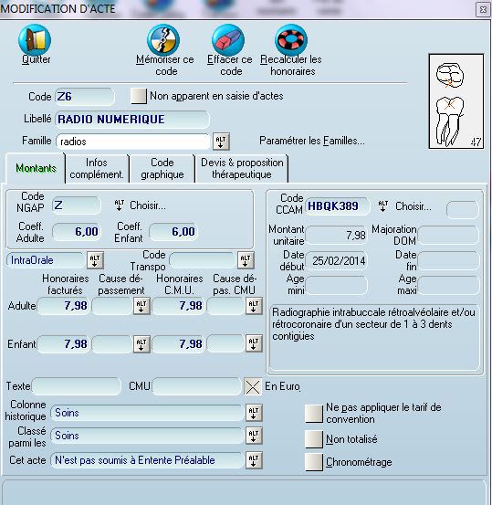 > > de l'arcade, j'ai le numéro de la dent qui s'affiche sur l'acte dans la