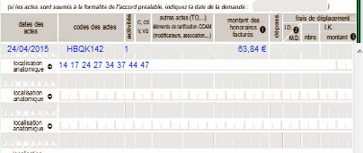 > de l'arcade, j'ai le numéro de la dent qui s'affiche sur l'acte dans la feuille