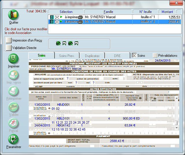 Voilà le paramétrage et voilà ce que j'ai sur la feuille de soins. Où est l'erreur.