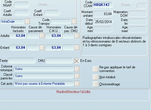 J'ai fait ce que tu m'as expliqué seulement si tu cliques 8 fois sur 8 dents différentes tu as une feuille de soins à 510.72€ pour un statuts radio maxillaire. Dans ce cas là je ne fais plus de traitement paro tellement c'est rentable, ou alors il faut cliquer sur un secteur de 3 dents HBQK389 sur 8 dents différentes et là je ne vois pas l'intérêt du HBQK142.