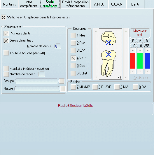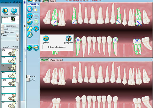 > sur l'acte "radio 8 dents" et je clique sur une dent quelconque sur lev schéma