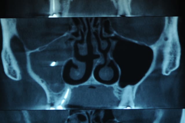Que pensez-vous de cette bouse très radio-opaque dans le sinus maxillaire gauche ?