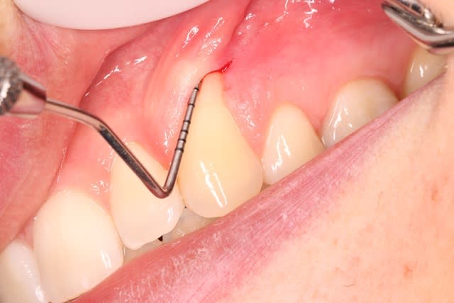oui, lambeau déplacé latéralement et bilaminaire au besoin selon l'épaisseur de la gencive attaché au gingivale des prémolaires.