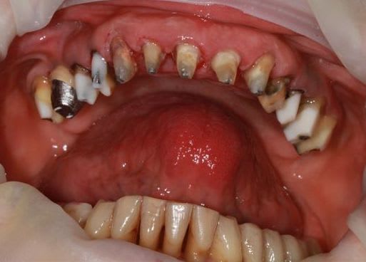toutes les dents sont déchaussées et gravement mobiles.