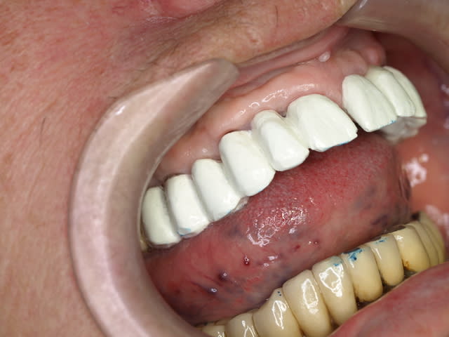 Il ne fut pas simple de décider de garder toutes ses dents, la solution radicale (implant) était une possibilité pas idiote, donc une fois décidé l'axe de travail, le but est que dans 10 ans minimum rien n'ai bougé.