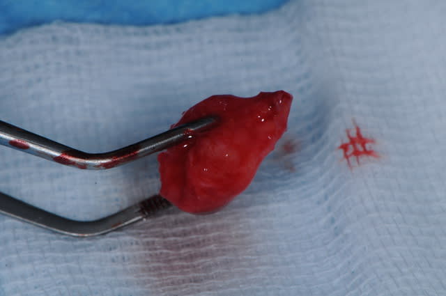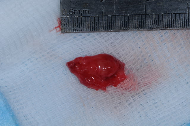 j'ai réalisé une exerèse d'un petit "fibrome" au niveau de la partie muqueuse de la lèvre mandibulaire, avec l'accord du dermato qui a vu les photos.