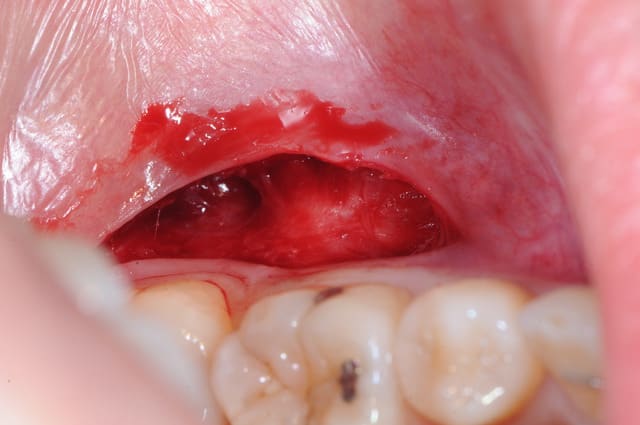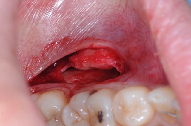 LBFA023 Exérèse de lésion de l'os maxillaire et/ou du corps de la mandibule de moins de 2 cm de grand axe, par abord intrabuccal