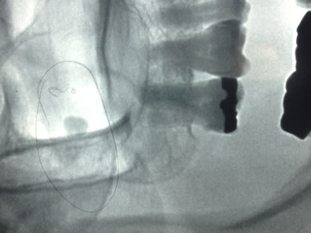 tu es sûr que les deux sinus sont semblables? que le trait vertical que l'on semble voir en mésial ne montre pas une poche kystique.