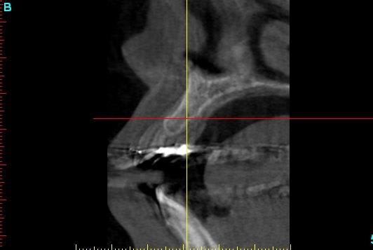 Pour finir, j'avais confiance dans le résultat. Greffons / os patiente, et mon idée de départ était de prouver la qualité du résultat osseux, donc rien de mieux qu'une expansion, qui de plus permet un remaniement osseux de deuxième intention, le risque des greffes étant une fonte osseuse en vestibulaire.