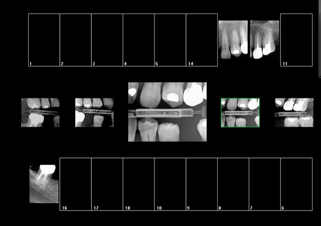 biop du bloc incisivo-canin dans une seule et même séance avec trois clichés radios sur chacune des 6 dents (Rvg Pré+Péri+Finale avec Endo) :