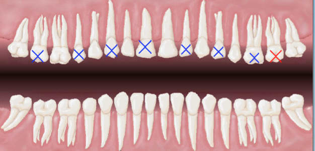 Si on reprend le cas d'une arcade avec la présence des 18 dents, on arrive à 7 secteurs et demi si on inclus les dents de sagesse..., c'est con..., en effet, cela aboutirait à un total de 15 secteurs pour la bouche entière...