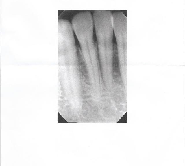 Il est possible aussi qu.une rvg mal calibrée ai donner une image noire entre les deux incisives.. Et qu.il ait un peu paniqué.Mais alors un sondage aurait calmé son stress et évité la prescription..