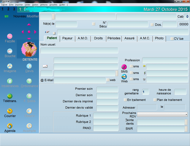 La prochaine version de julie ( sauf erreur 3.32.0.11 ) modifiera l aspect de la fiche patient ( réorganisation des onglets + une "surprise" ).