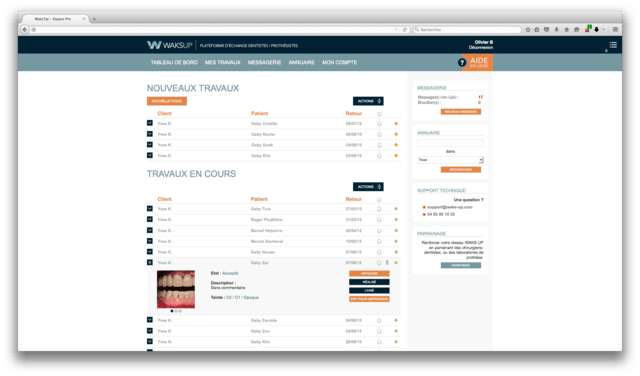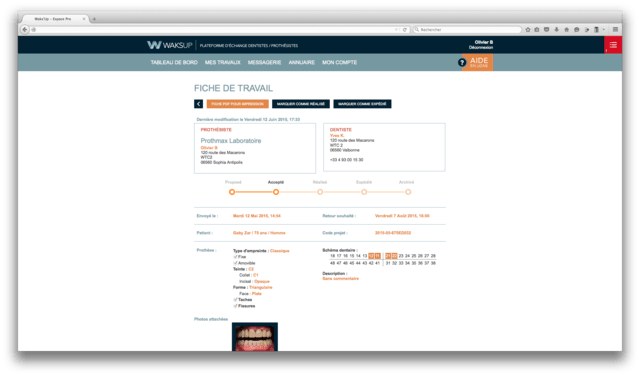 Je vous présente un outil dont je suis à l'initiative, WAKS UP : une plateforme collaborative entièrement en ligne permettant l’organisation et la gestion numérique des commandes de prothèses dentaires et facilitant les échanges entre le chirurgien-dentiste et le prothésiste.