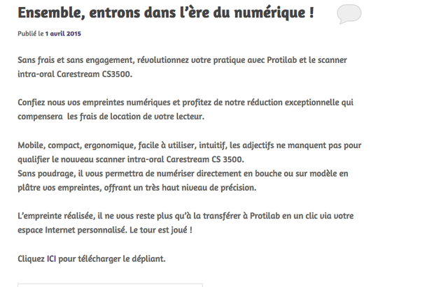 En plus d'être un outil , nous permettons aux patients d'avoir un "suivi" de leur prothèse. certes l'outil ne s'adresse pas aux praticiens peu scrupuleux qui font de la prothèse d'importation en faisant croire que tout est "made in france".
