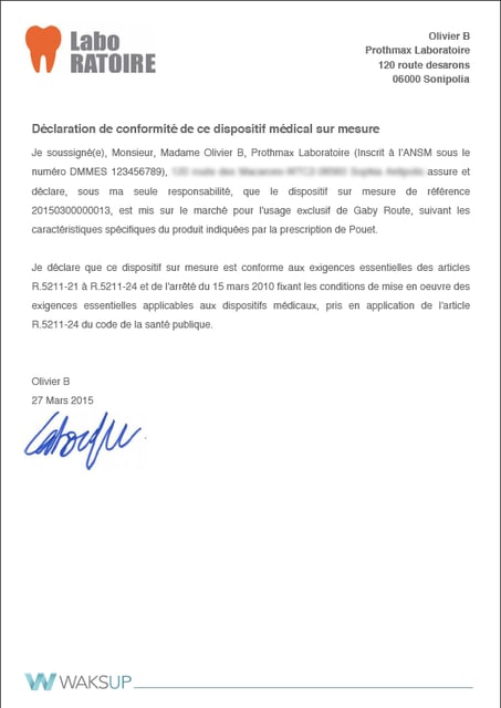 Voici ce que reçoivent les patients , après validation de la fiche par le prothésiste