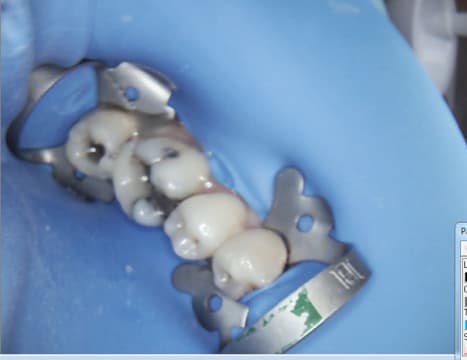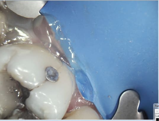 Ah ? reconstitution pré endo. Peak universal bond ( direct sans mordancage) luxacore Z, clip flow pour étanchéifier la digue le cas échéant.