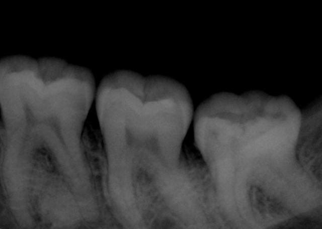 Patiente, 25 ans, dents impeccables, juste une sensation un peu douloureuse secteur 3 à la mastication depuis quelques jours.