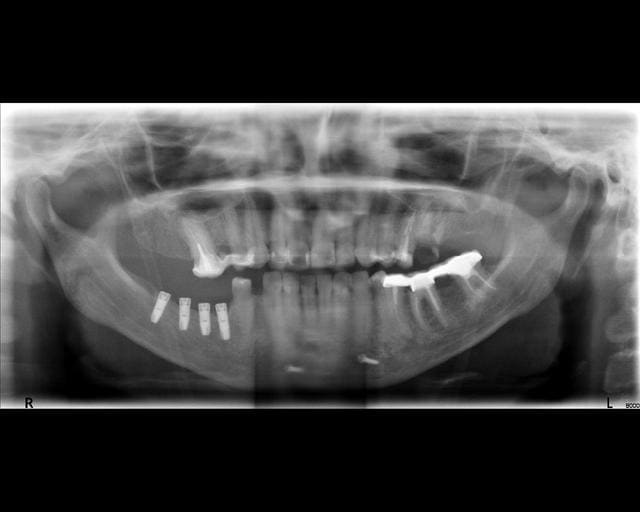 Ça peut être de l'Astra, ou une copie d'Astra... Vu le plan de traitement, et la pose de 4 implants antagonistes à une seule dent, je ne serai pas pressé de m'occuper des implants, il y a tant à faire avant !