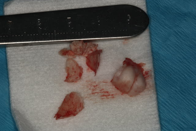 Sur photo 3 et 4, on voit l'os exposé, après lambeau de décollement.