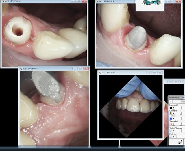 > la photo 1 :resultat a 4 ans d'un bridge sur inlay core en 1 fois .