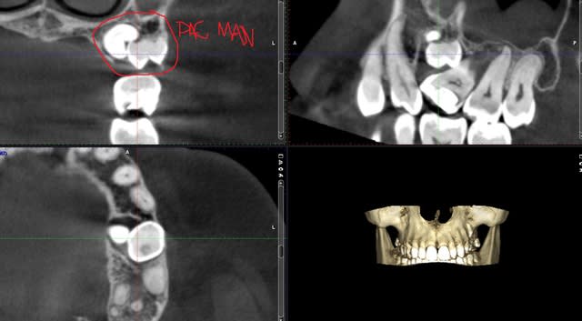Cbct, proximité artère palatine si 25 en palatin, pas évident..
