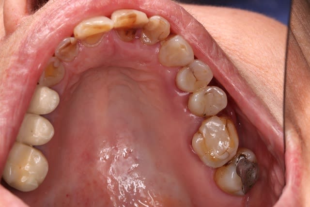 ils augmenteraient l'asialie ,du coup ,les dents s'useraient a grande vitesse par manque de lubrification .ce qui pourrait aussi expliquer l'etat du haut et des gencives ......