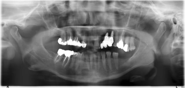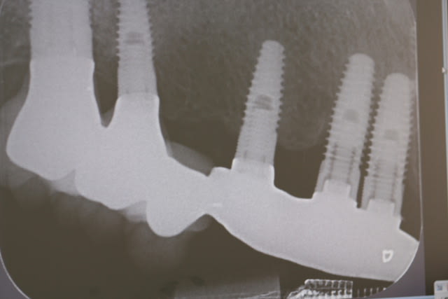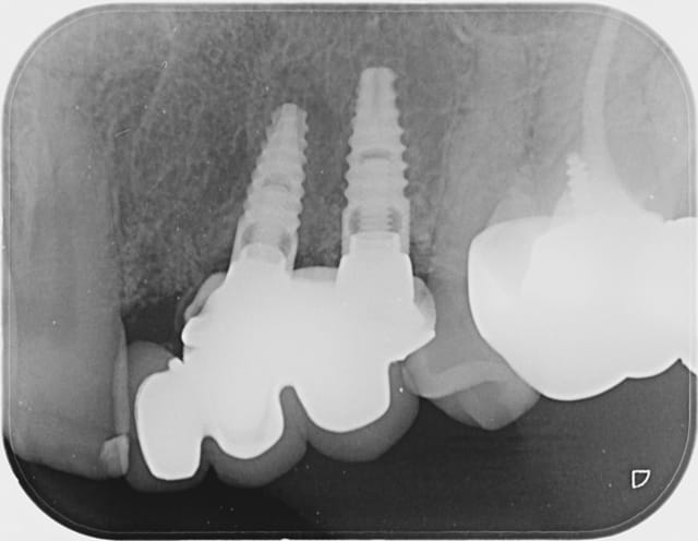 Un "bridge" 22-23-24 a été réalisé il y a 6 ans, sur 2 implants.