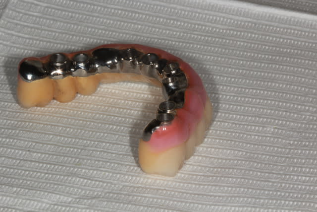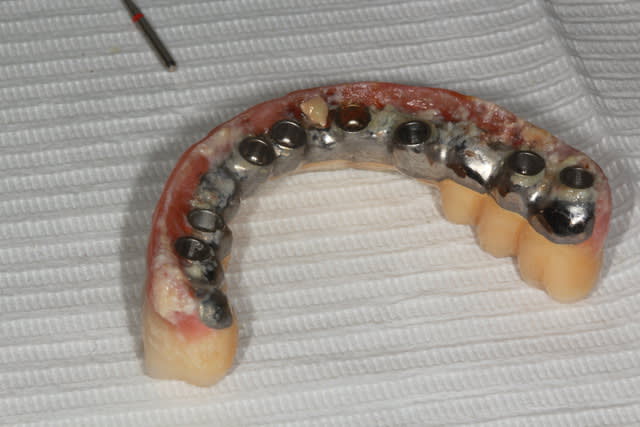 @Algi : oui j'avais pensé à fraiser la fausse gencive : on ne le voit pas bien sur les photos, mais l'intrados au contact de la gencive est en métal, ce qui aurait fait une limite difficile à camoufler.