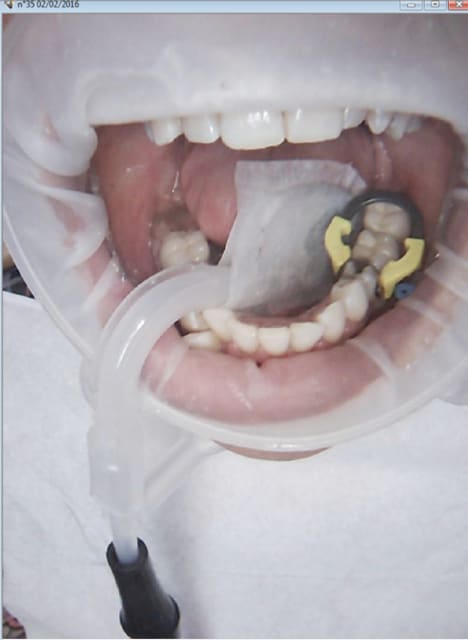 on enlève pas l'isolite, le capteur est coincé par la languette qui récline le plancher de la bouche et la langue. De plus le patient détendu ne tend pas le mylo hyoïdien au moment de l'insertion du capteur